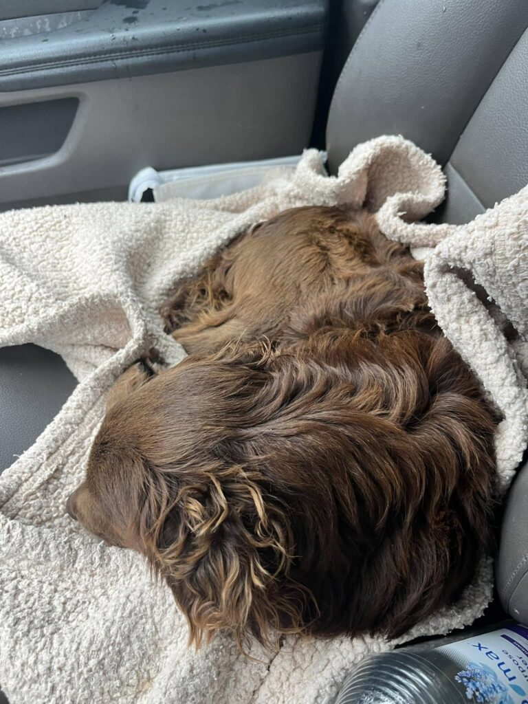 Once he let his guard down, Mary carefully gathered him up, with the assistance of workers who ensured the elevator door remained open. She then carried him to her car, wrapping him in warmth and comfort.