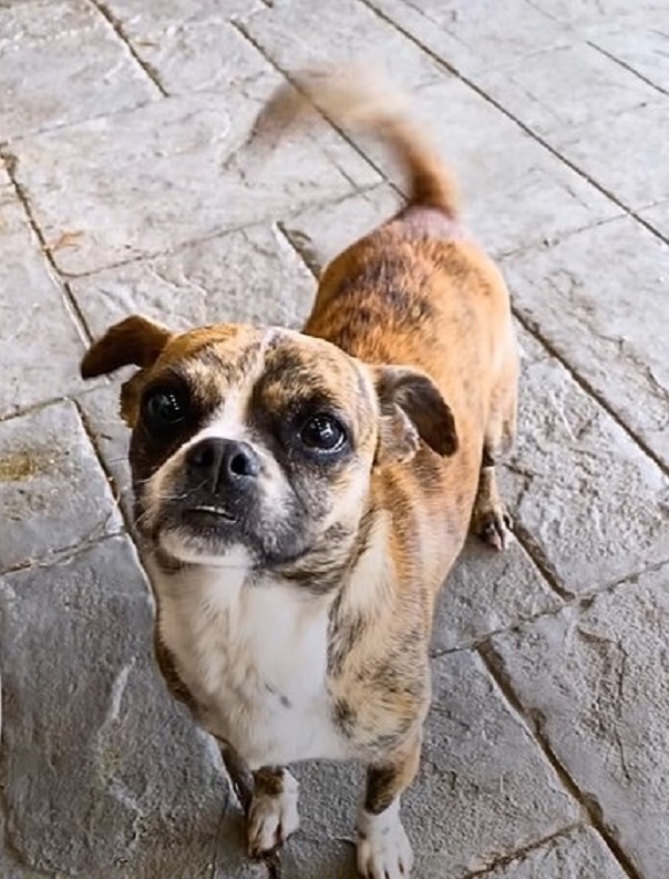 Meeting Mica for the first time, Samantha was struck by the beauty of the little brindle dog, with her white paws resembling tiny socks. The first order of business was giving Mica a warm, soothing bath.