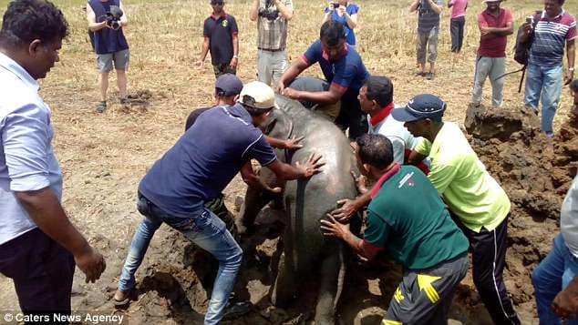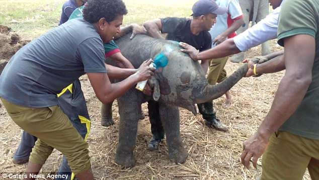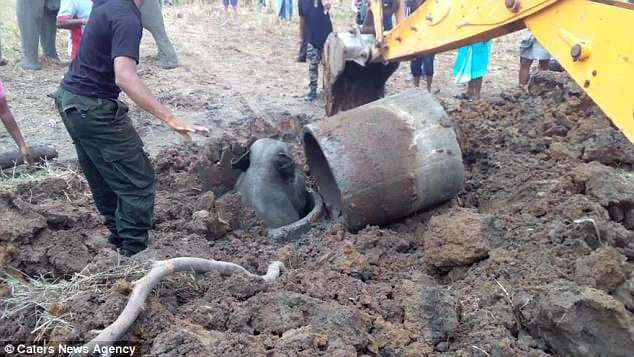 The community united, employing strategies and tools to rescue the trapped baby elephant.