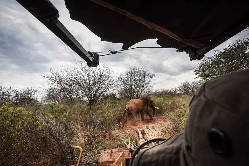 Safety concerns prevented immediate treatment, leading Taru and DSWT pilots Neville Sheldrick to relocate the elephant at first light the next day.